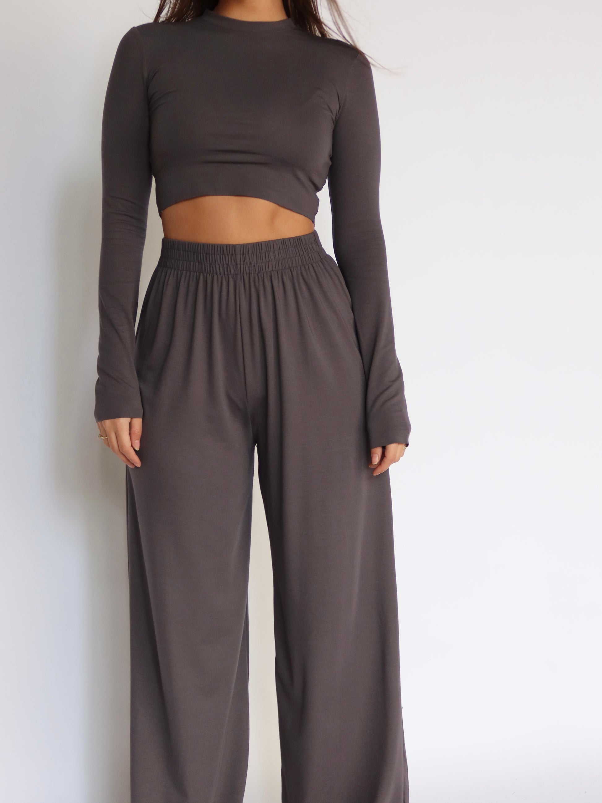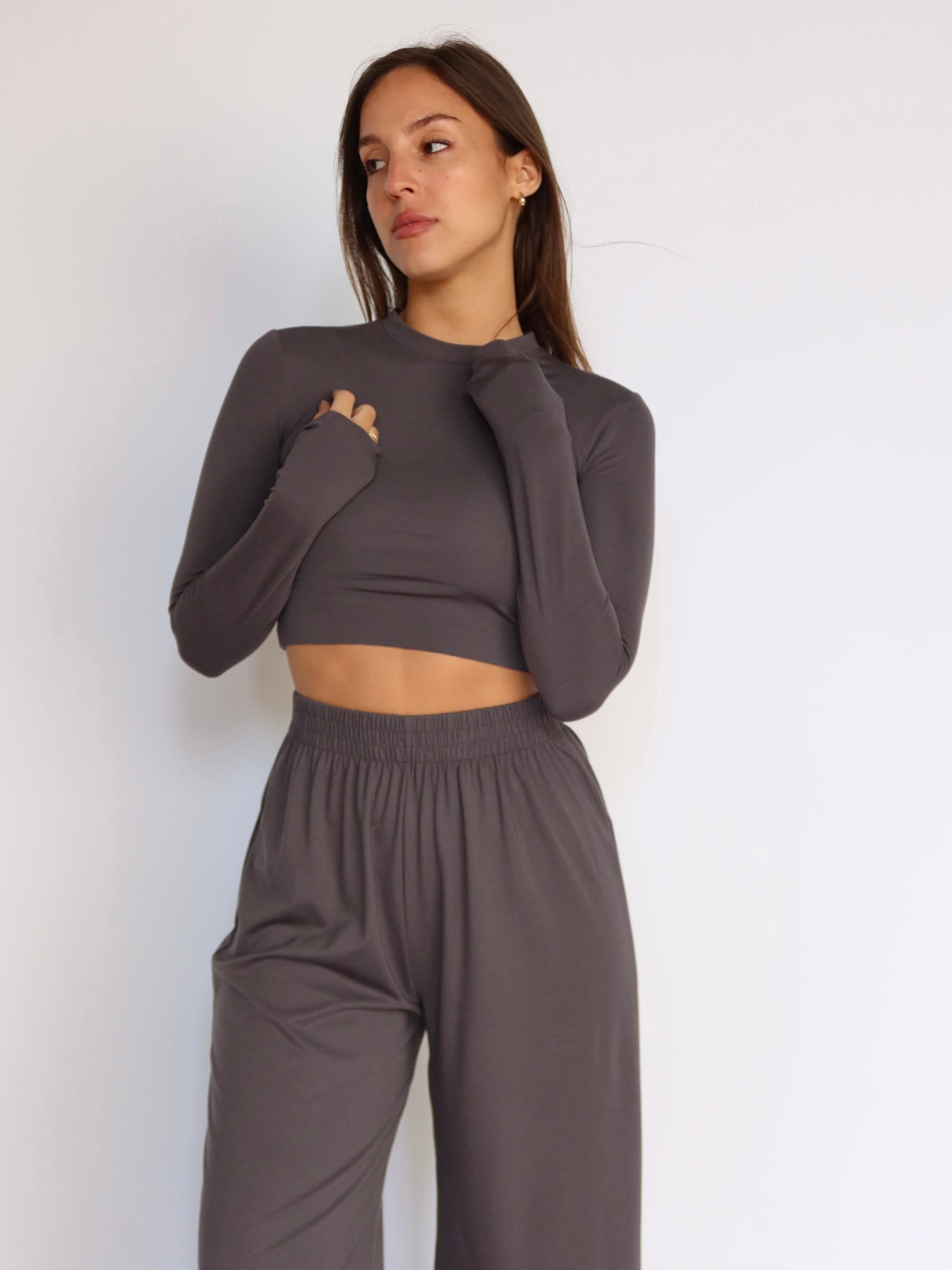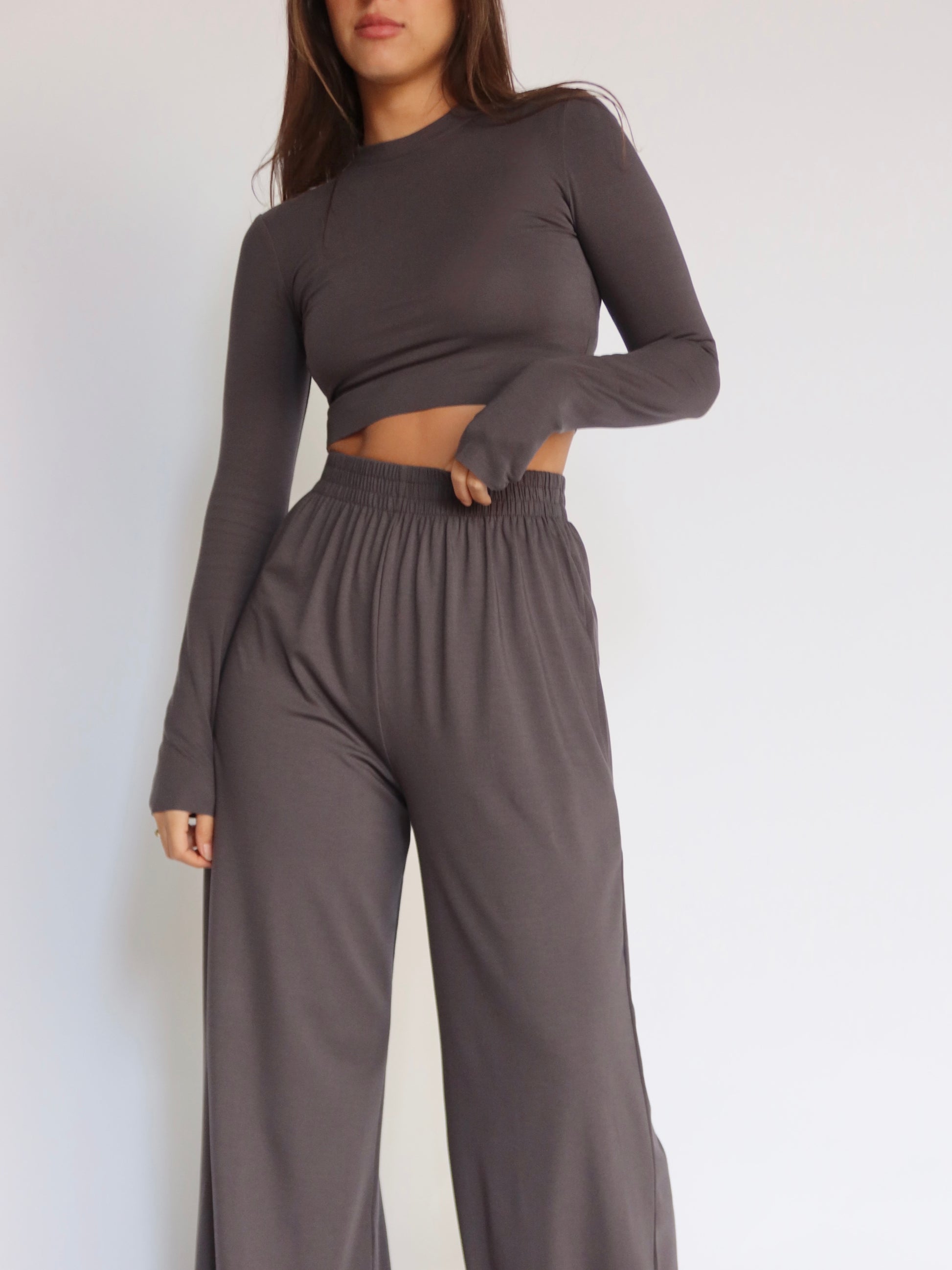 מכנס עם גומי מבד כותנה נעים בגזרה ישרה רחבה