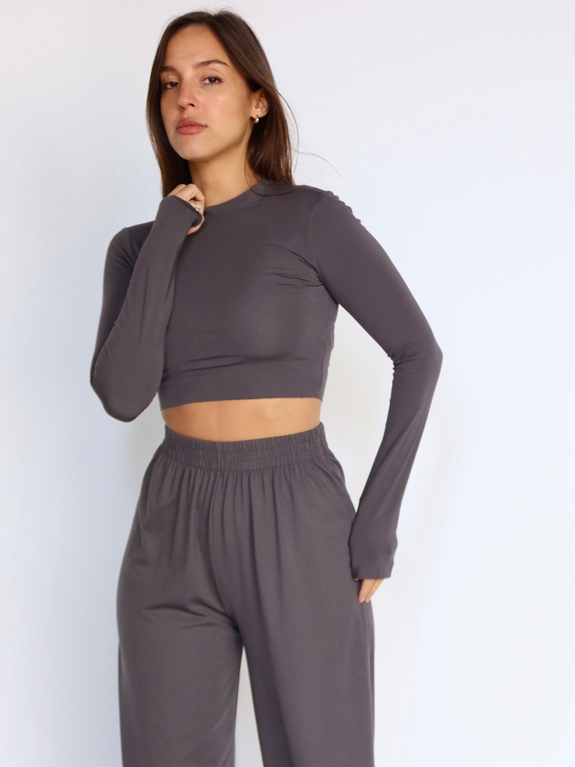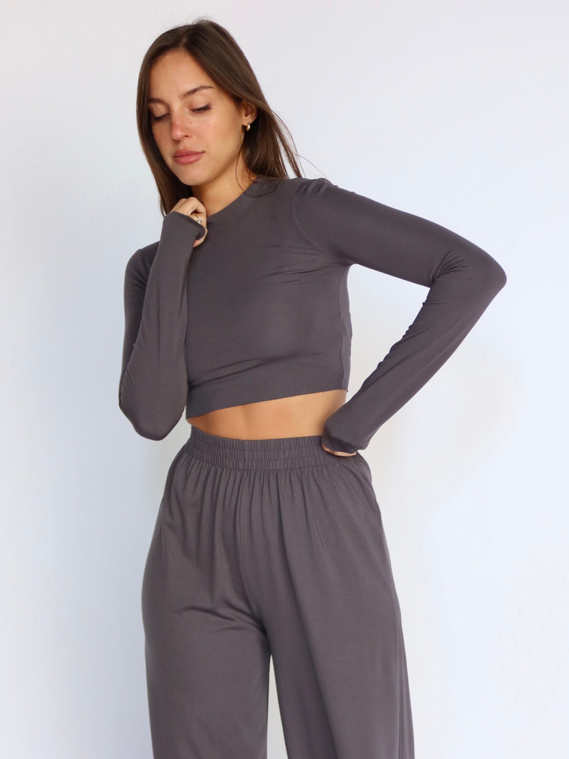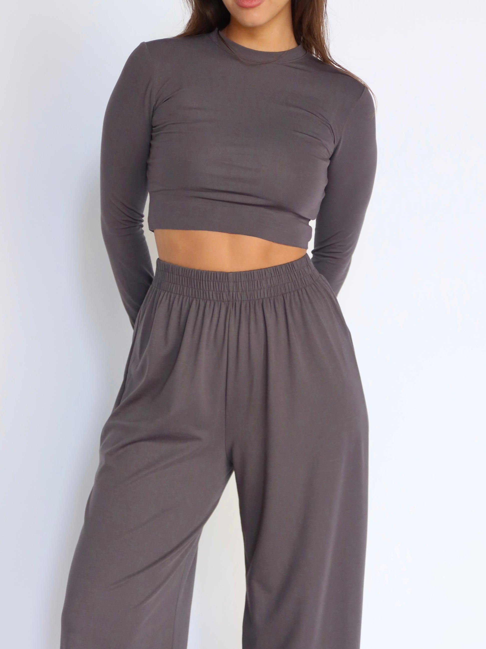 מכנס עם גומי מבד כותנה נעים בגזרה ישרה רחבה