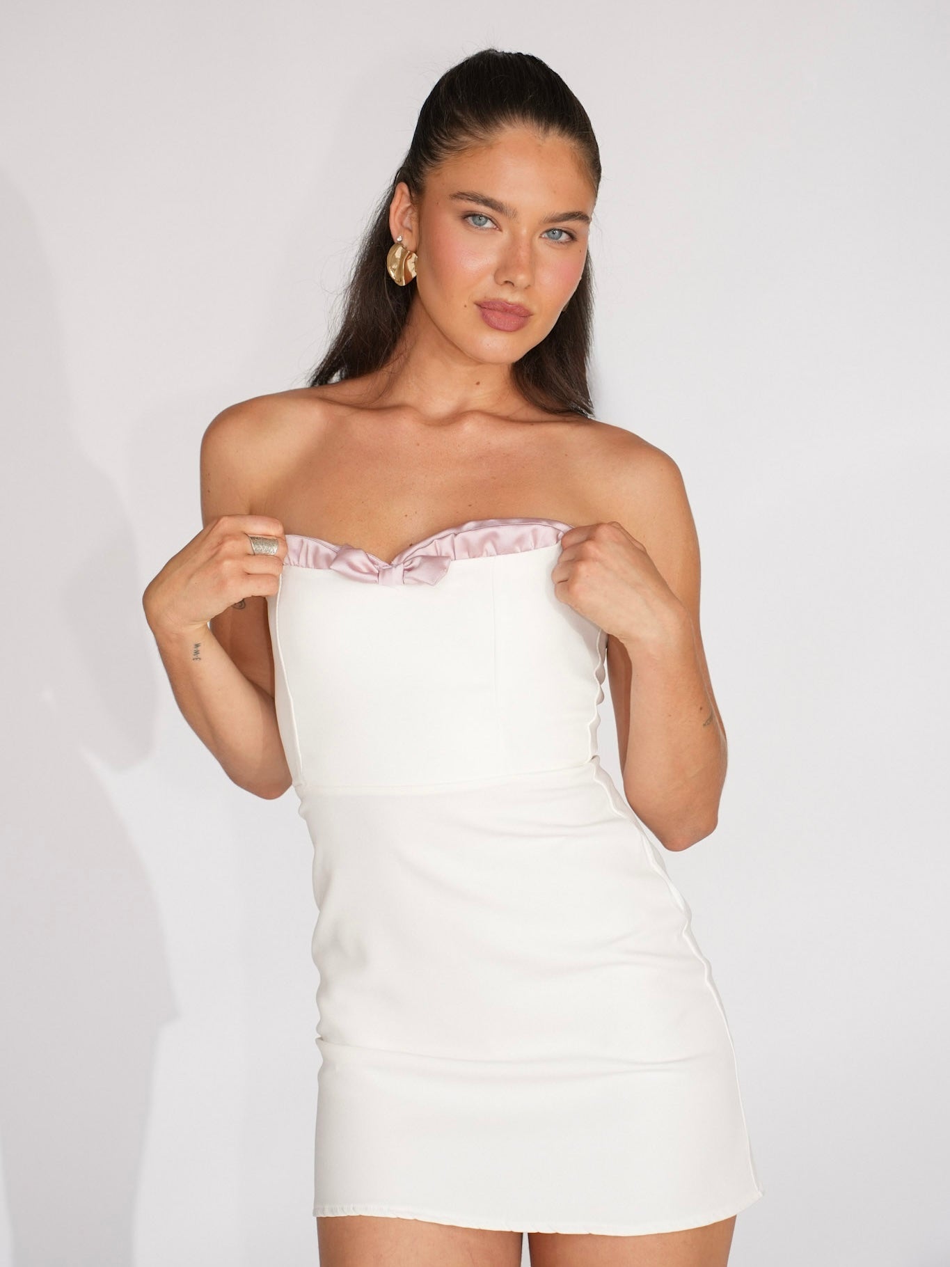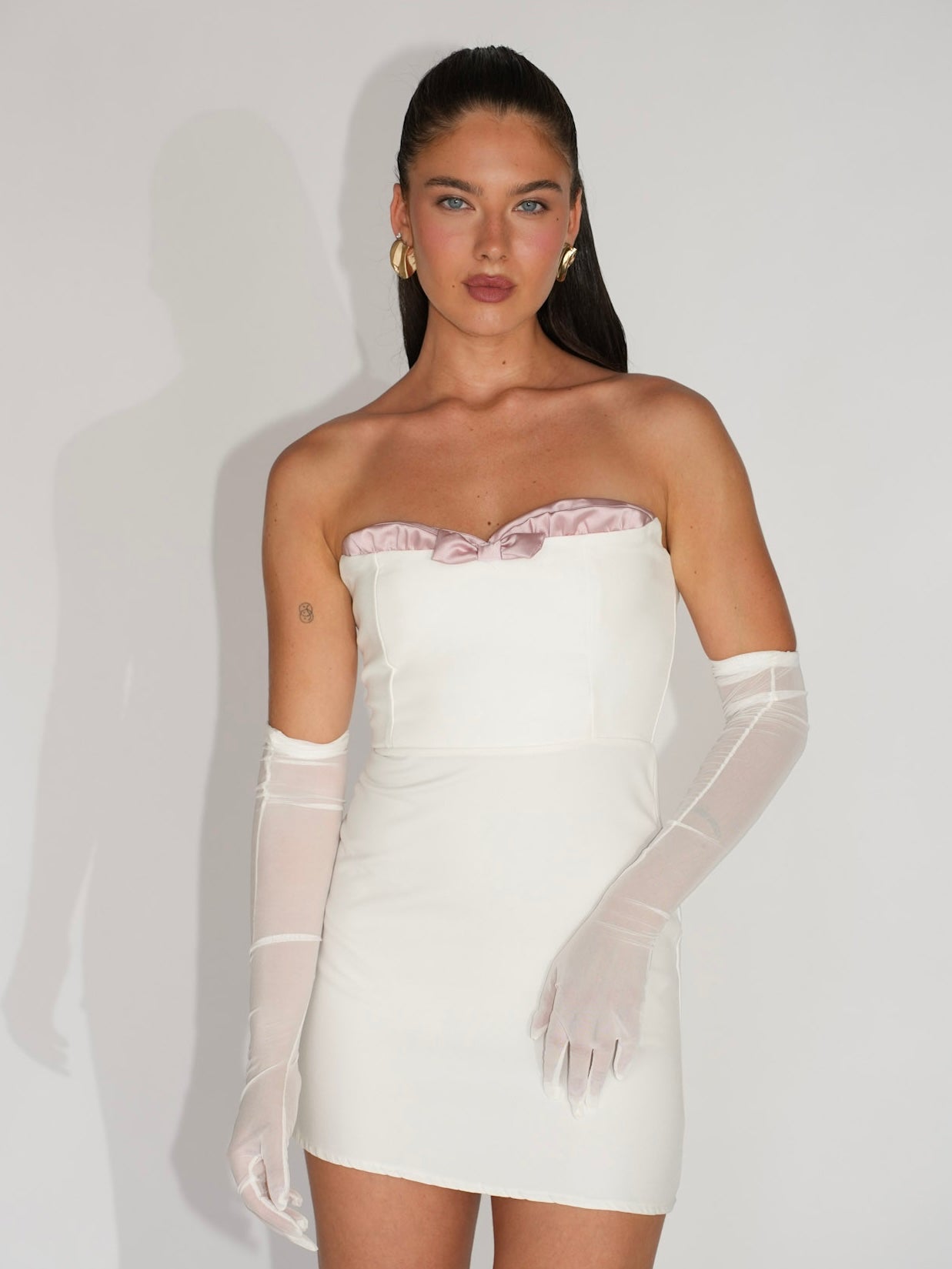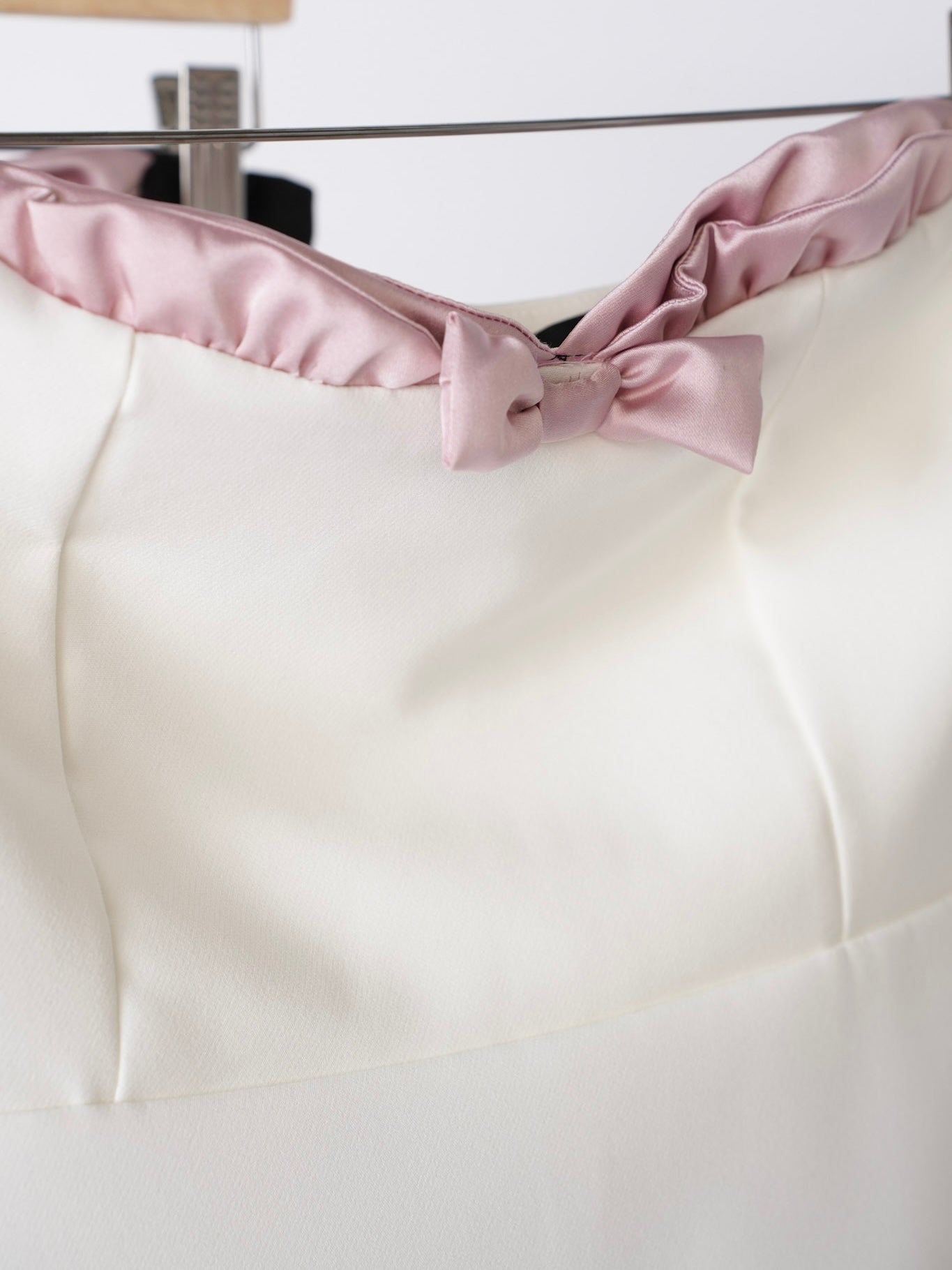 דיטייל פפיון סאטן ורוד וסגירת רוכסן מאחור