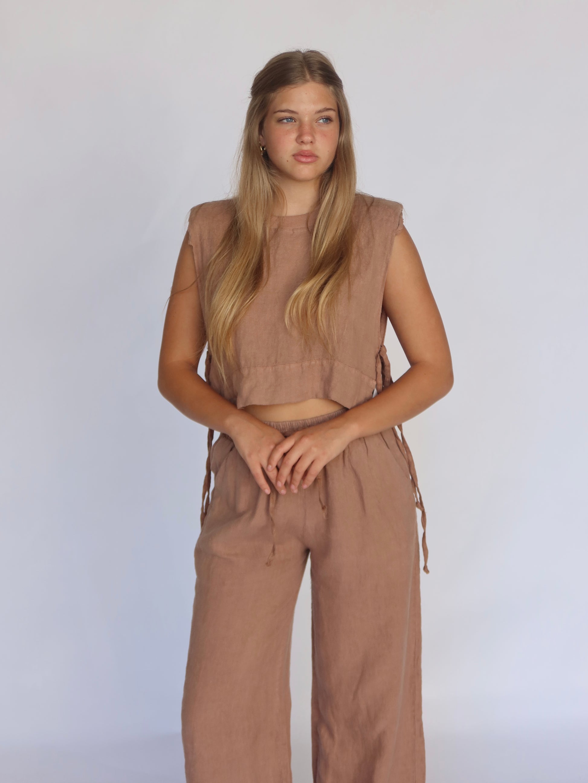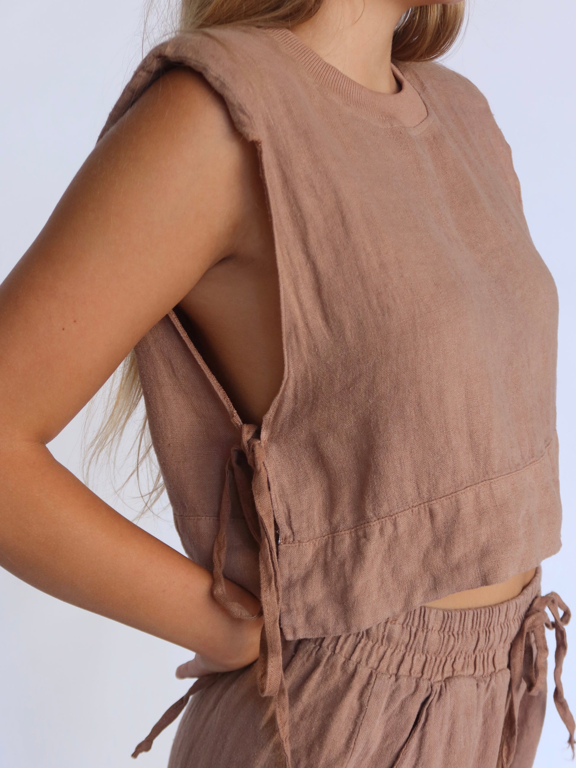 כריות בכתפיים ושרוכים לקשירה בצידי החולצה