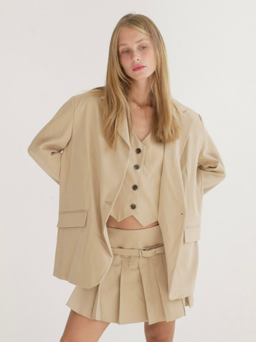 בלייזר מחויט בגזרת אוברסייז עם וסט מחובר (לא ניתן להפרדה)