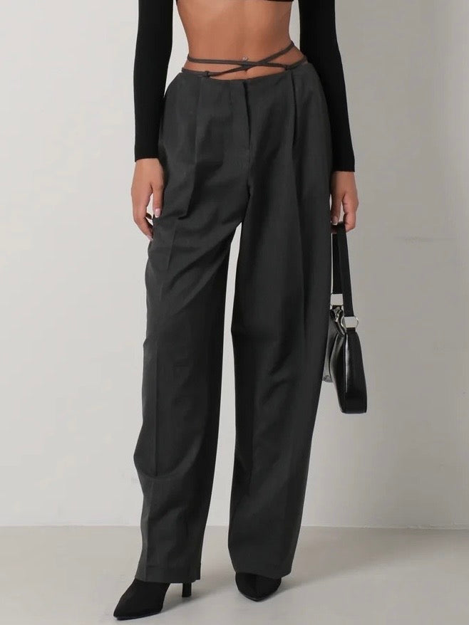 מכנס מחויט בגזרה ישרה עם פנסים קדמיים