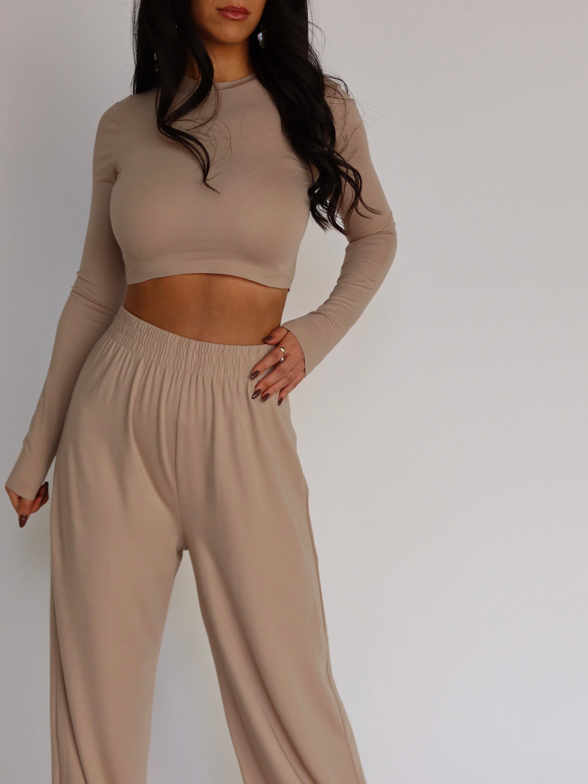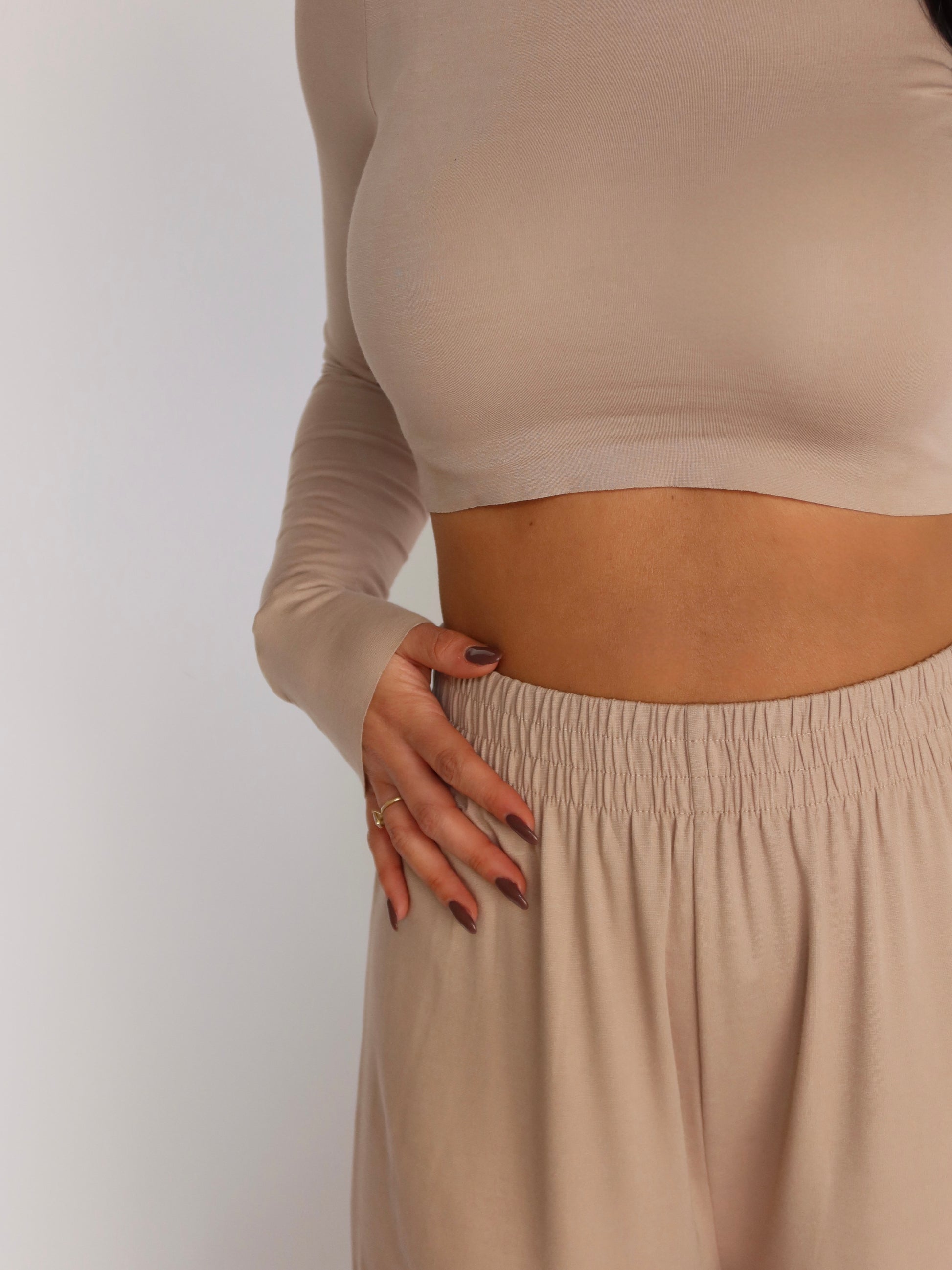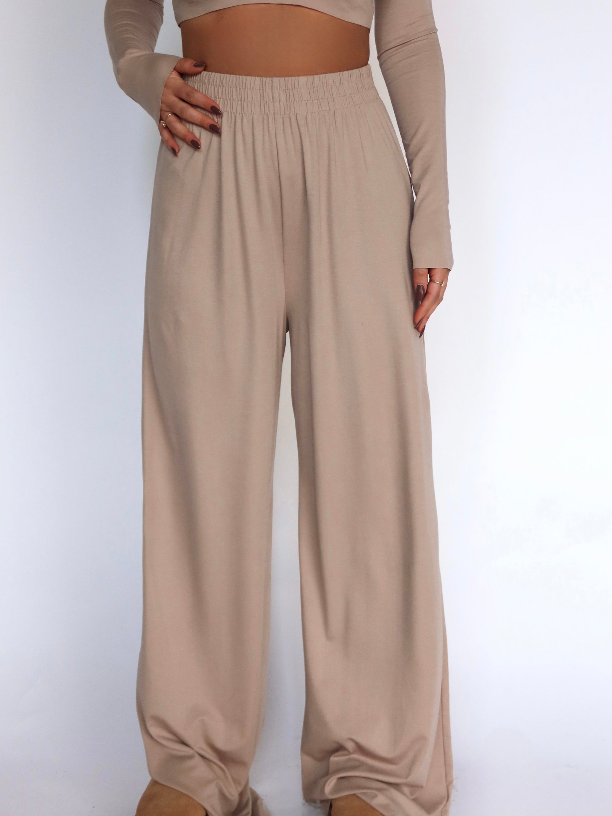 מכנס מבד כותנה נעים עם גומי בגזרה ישרה רחבה