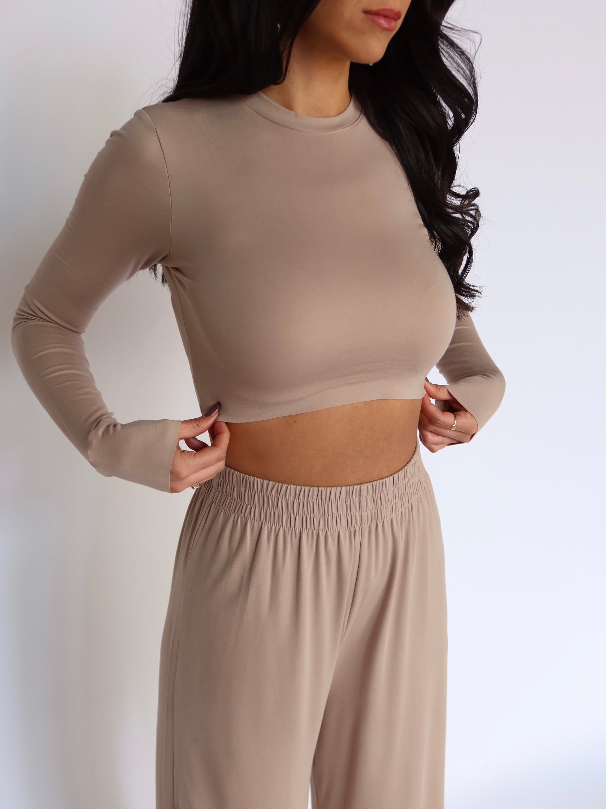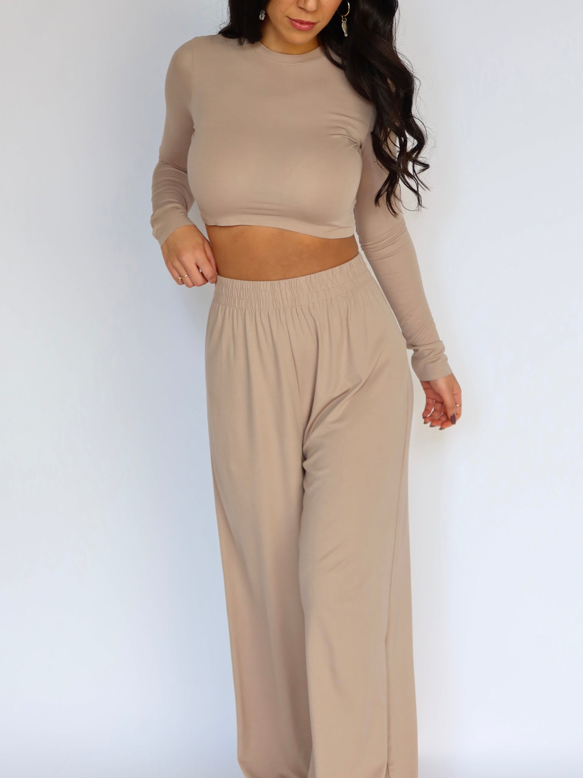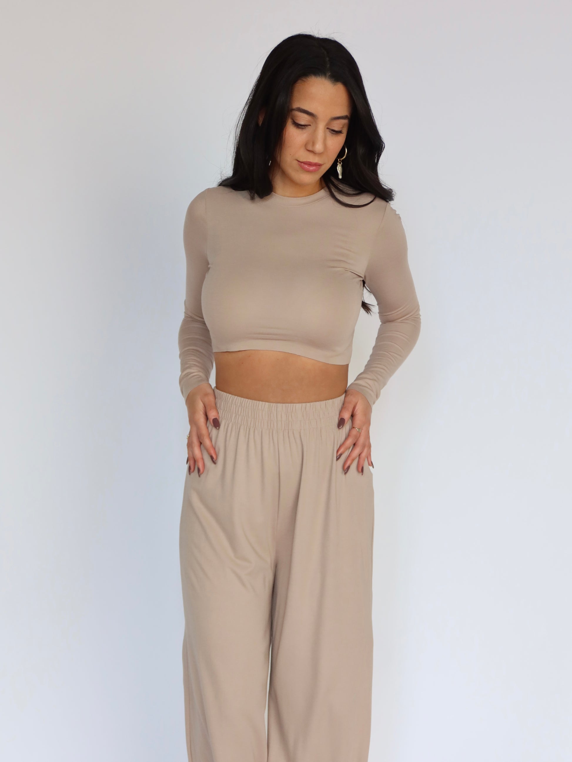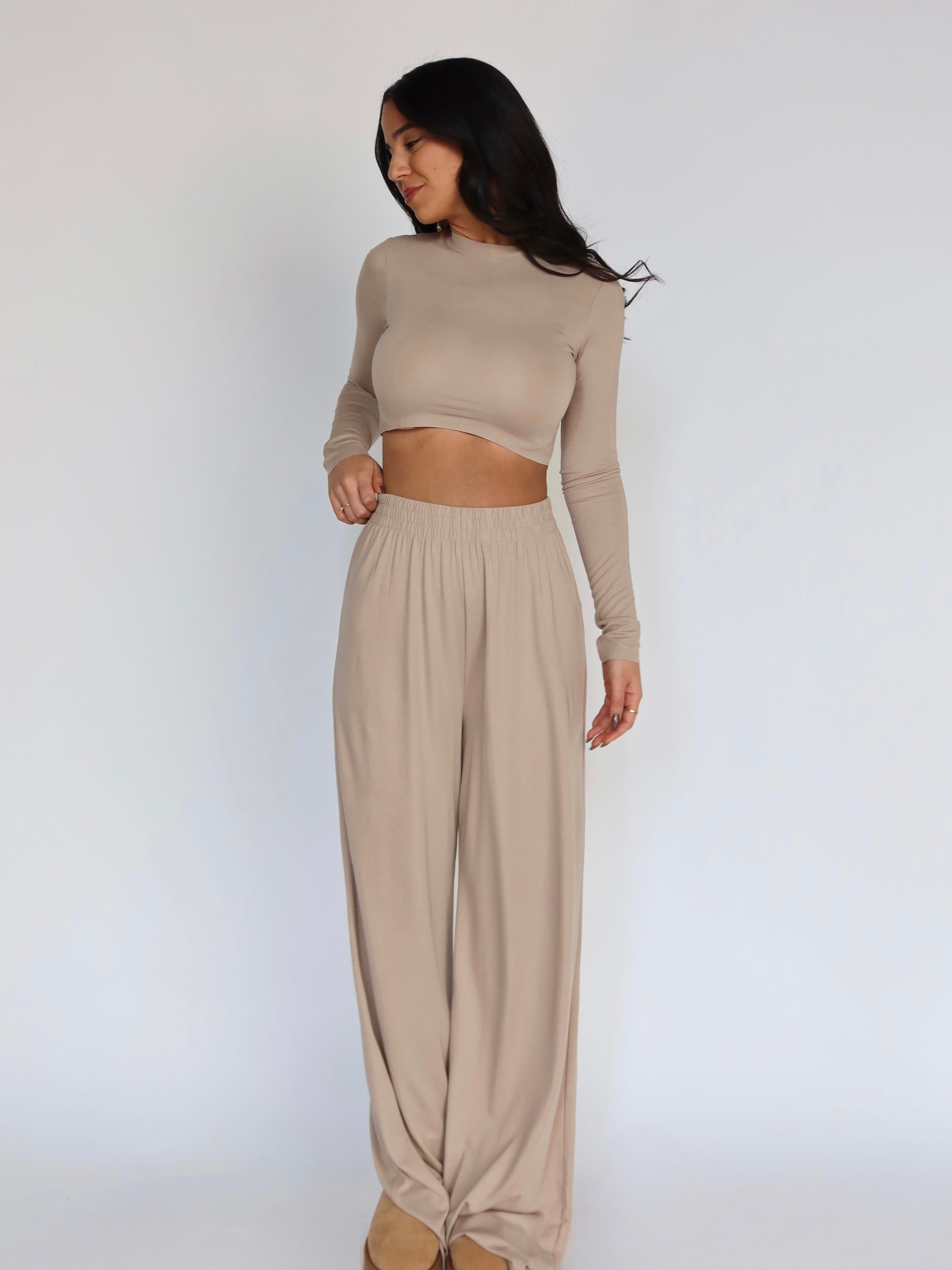 מכנס מבד כותנה נעים עם גומי בגזרה ישרה רחבה